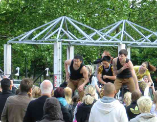 Bereits während der Ausbildung werden die Teilnehmer/-innen im Gemeinwesen aktiv, u.a. durch die Beteiligung an Stadtteilfesten und internationalen Jugendbegegnungen, durch Aktionen wie "jung bewegt" oder anderen Veranstaltungen. Sie wirken in die Strukturen zurück aus denen sie ursprünglich kommen z.B. in die Jugendfreizeiteinrichtungen oder Schulen.